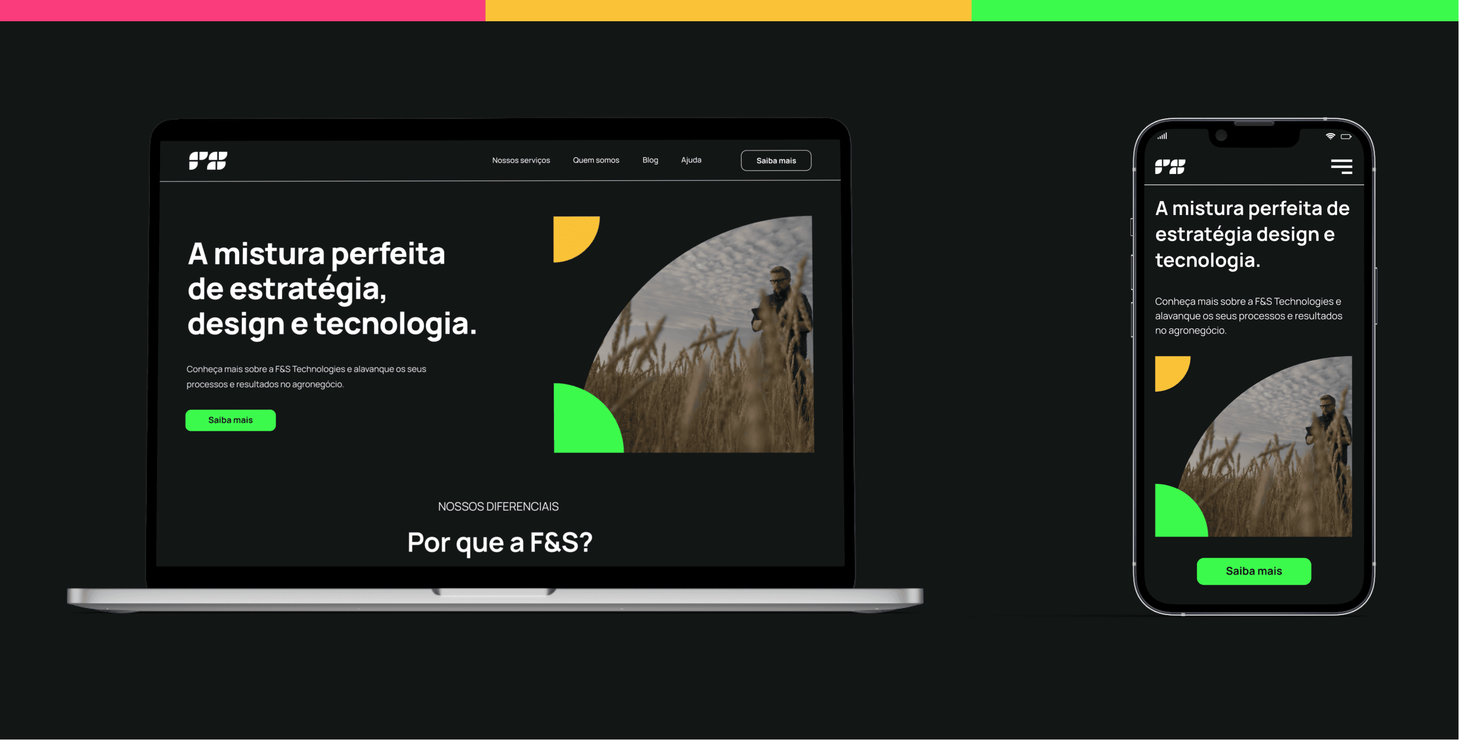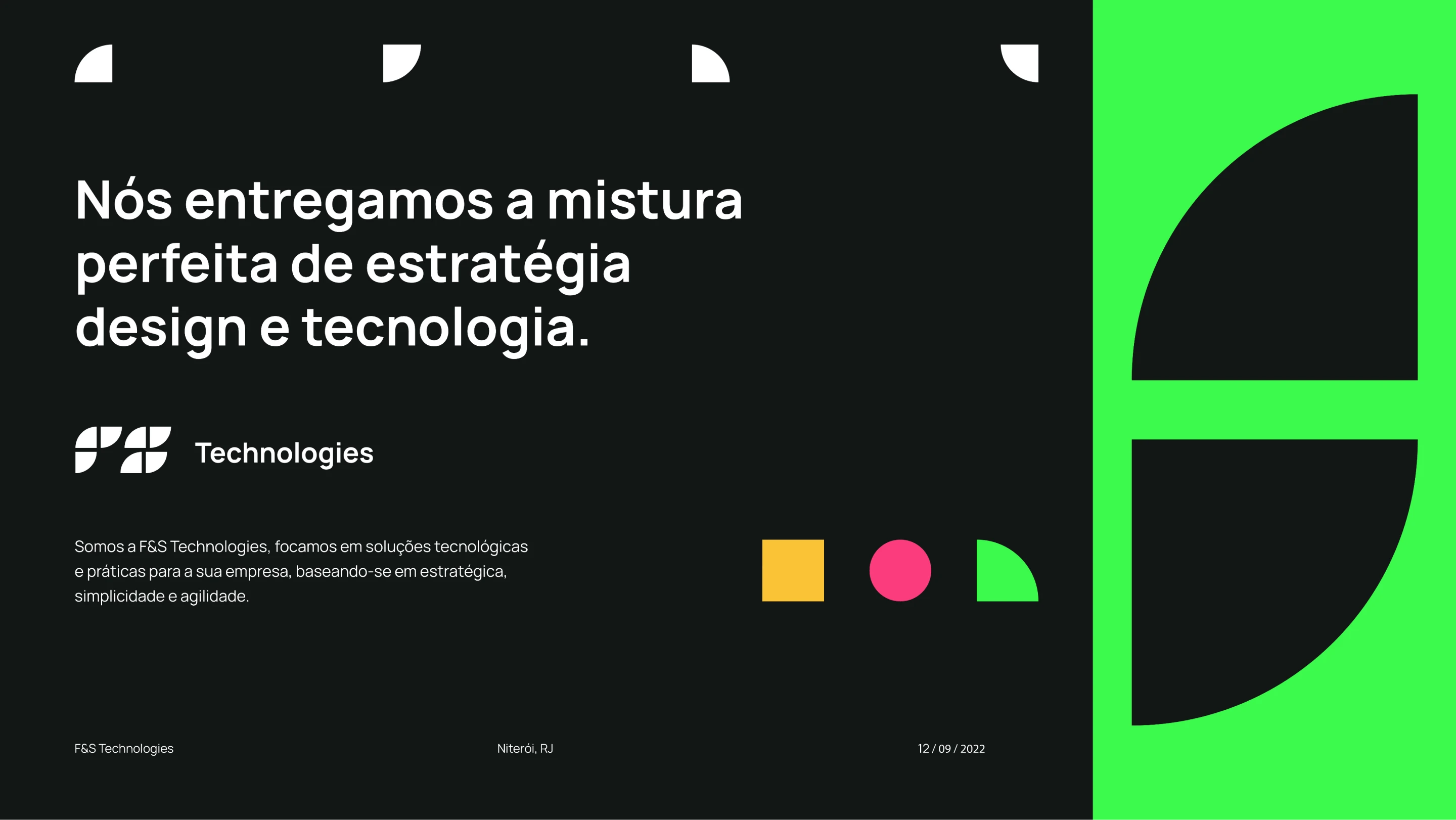F&S Technologies is a tech solutions company compromised on resolving management, operation processes and systems for companies focused on agribusiness. The very first goal of this project was to put together three basic elements to compose the F&S brand. Simplicity, which conveys the value of agility, Unity, which reveals the essential characteristic for which the company was built, and finally, technological agriculture, in order to reveal the number one service which the company offers.